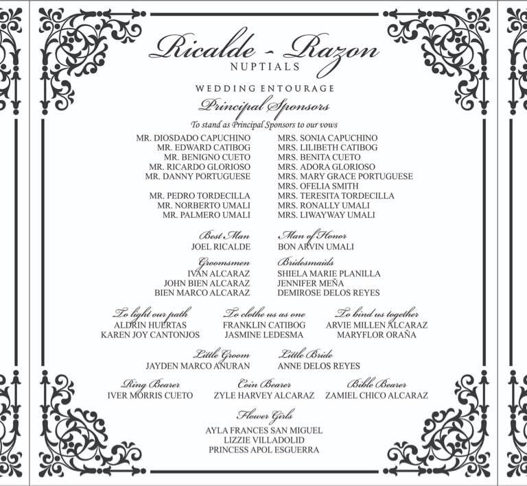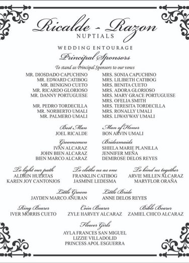 THE PRESENCE OF ALL OF THE PRINCIPAL SPONSORS IN THE CHURCH ARE REQUESTED TO BE EARLY. SEE YOU THERE!